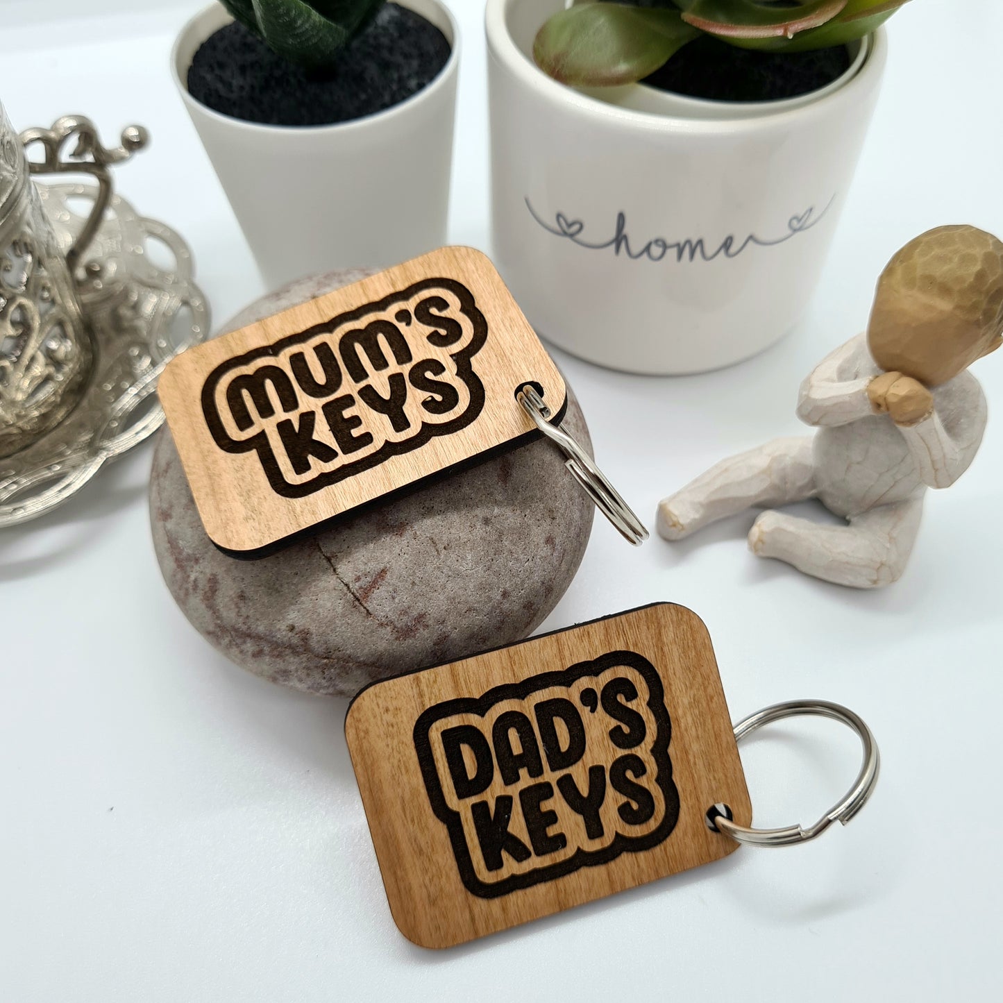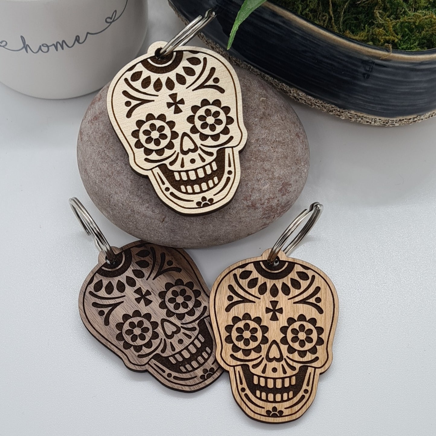 Add personality to your everyday carry with our unique collection of engraved wooden keyrings. From vibrant Dia De Los Muertos sugar skulls to matching sets for couples (His and Hers) and parents (Mum and Dad), each keyring is crafted from premium veneered wood with secure metal attachments. Perfect as thoughtful little gifts, stocking fillers, or treats for yourself. Compact, lightweight, and durable enough for daily use, these keyrings celebrate relationships, culture, and individuality. Ideal gifts for anniversaries, Valentine's Day, Mother's Day, Father's Day, or any occasion when you want to give something small but meaningful.