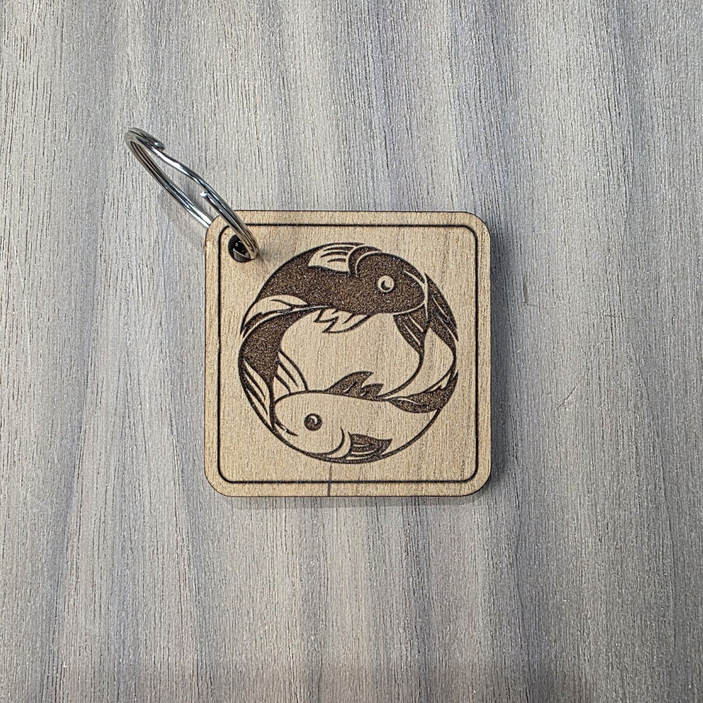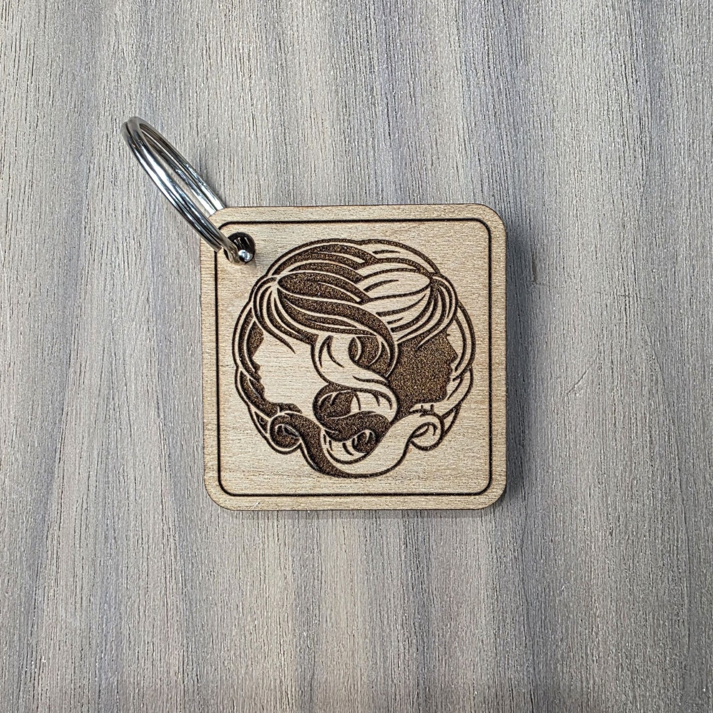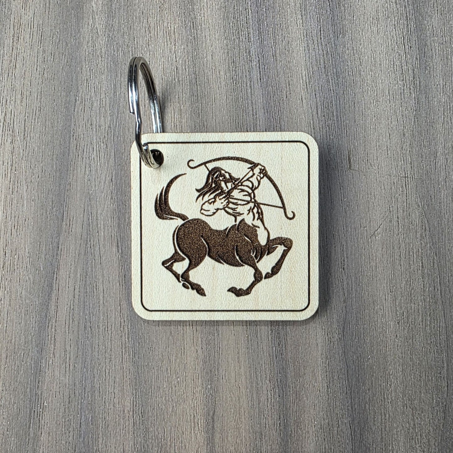Zodiac Keyring - Engraved Wooden Star Sign Keyring