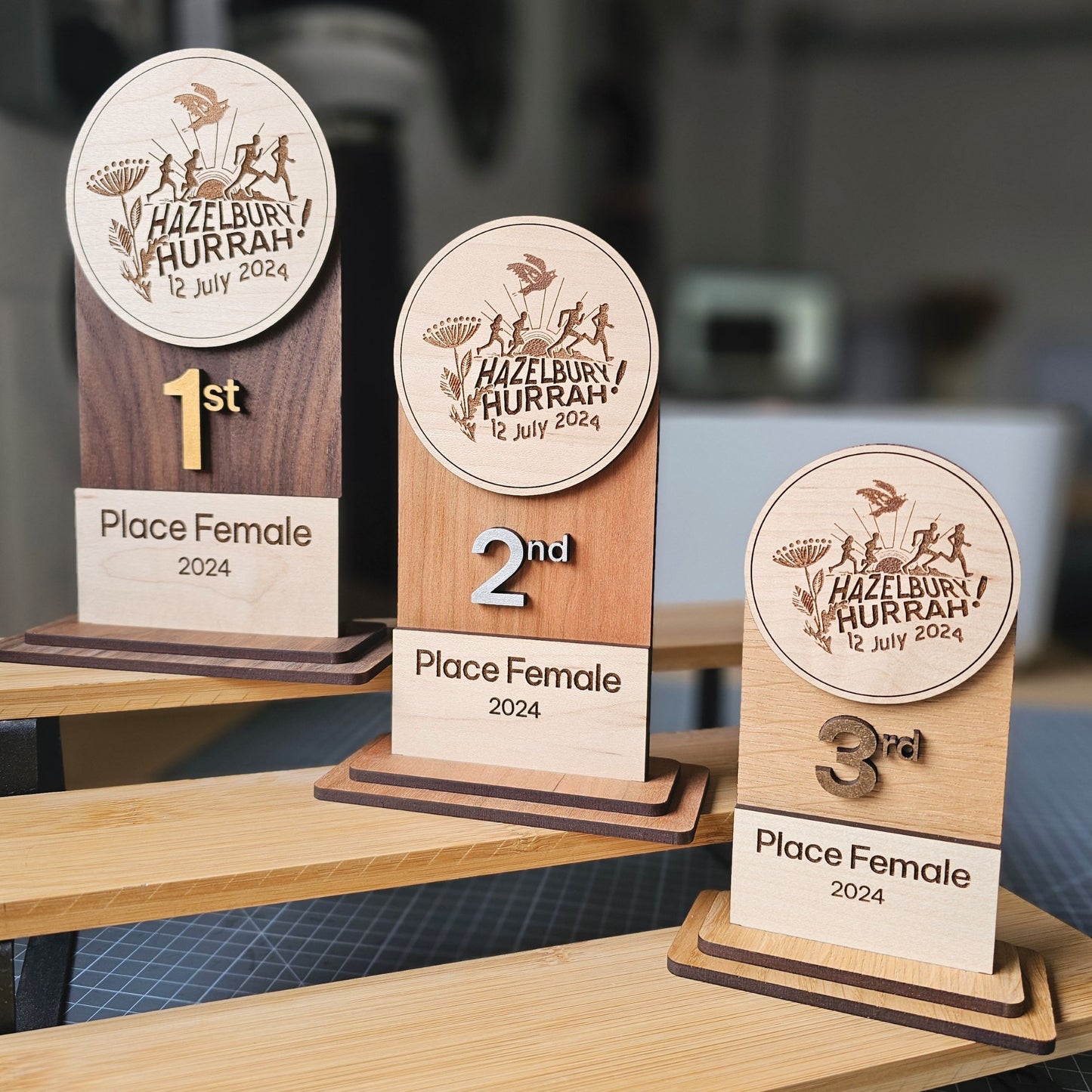 Share details about your event and the type of award or trophy you're envisioning. Whether it's wooden medals (single or double-sided engraved, complete with ribbon), standing trophies, or something entirely unique—we'd love to hear your ideas.