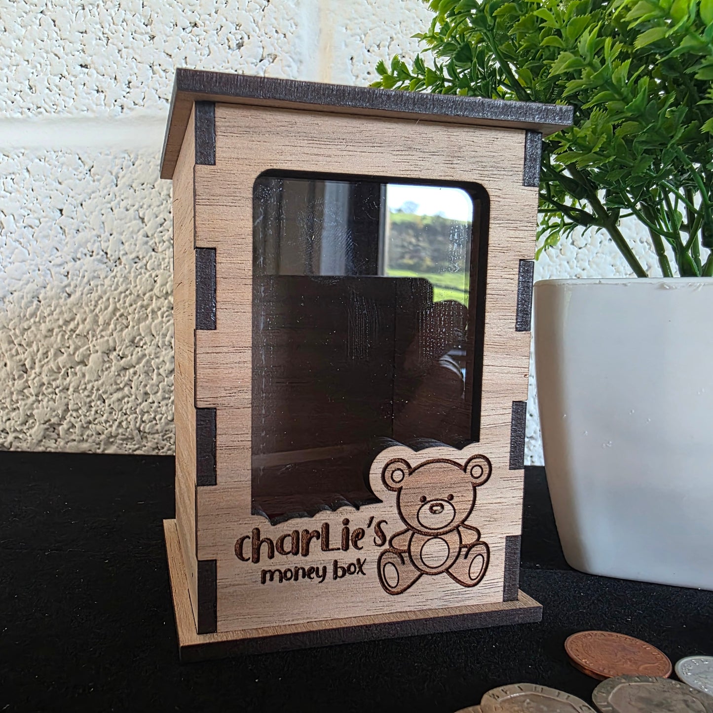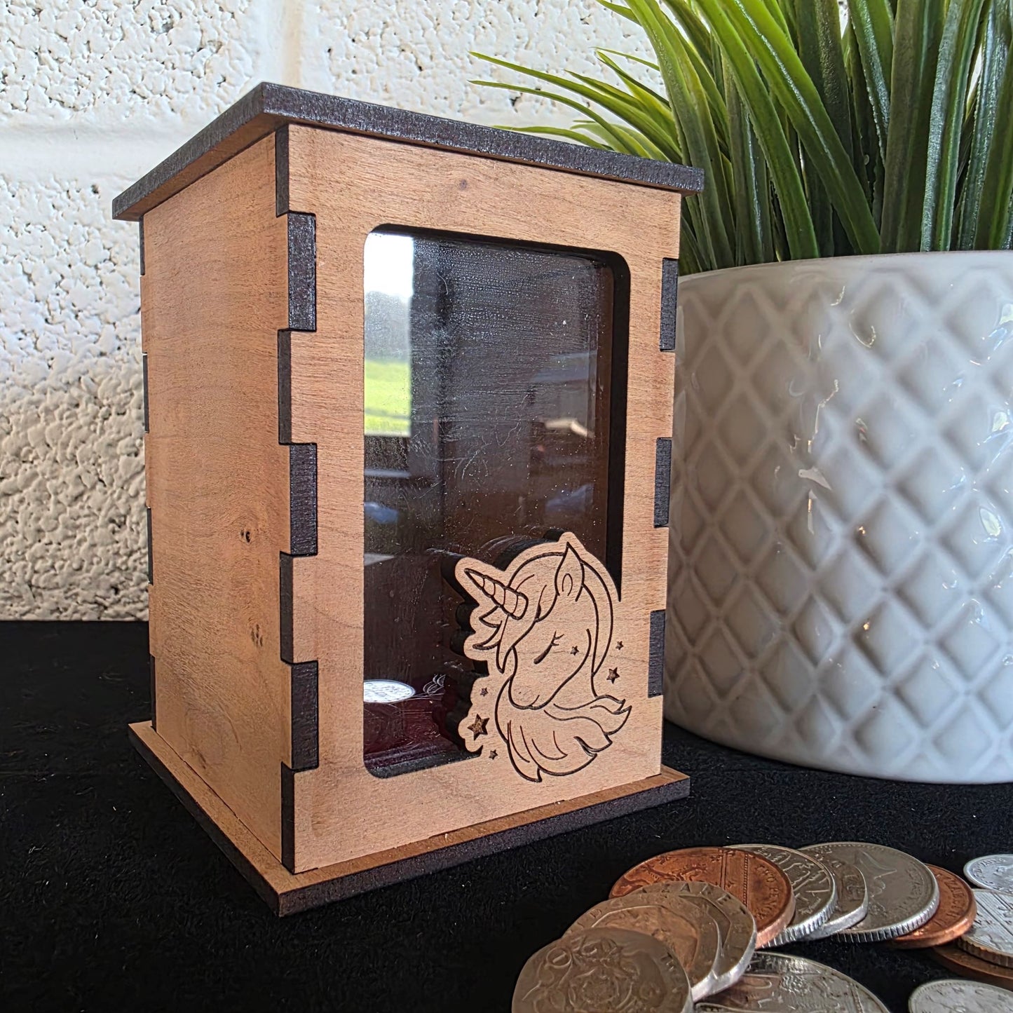 Make saving fun with our charming collection of wooden money boxes! Crafted from premium 4mm veneered wood with velvet-lined bottoms, each box combines quality with personality. For little savers, choose from adorable designs featuring robots, unicorns, and teddy bears - many available with personalisation. For grown-ups, enjoy our cheeky options including swear boxes, wine funds, and beer token boxes that add humour to saving. Available in three different sizes to suit your saving goals, from pocket money to holiday funds. Each money box encourages good saving habits whilst bringing a smile to your face. Perfect gifts for children's birthdays, new babies, housewarmings, or anyone who needs a fun way to save up for something special.