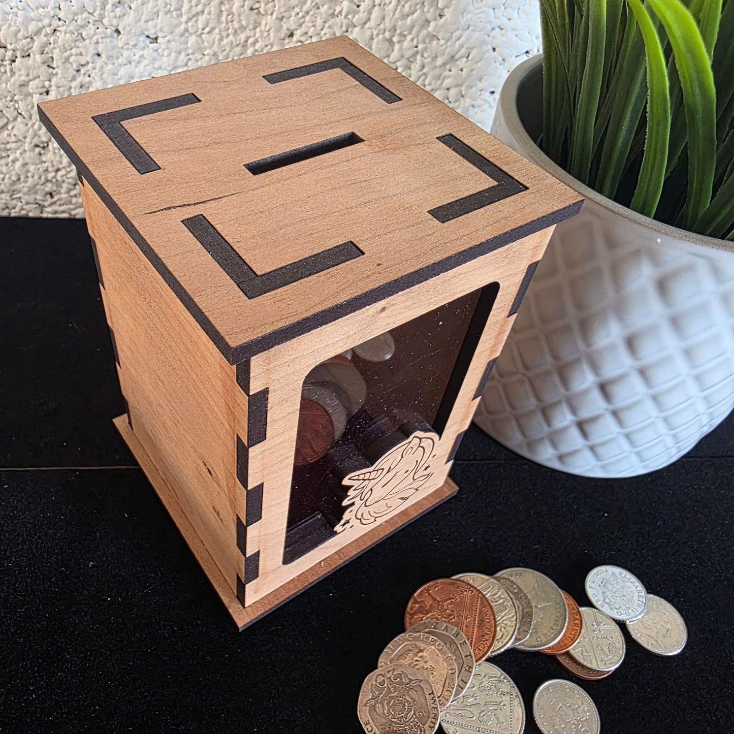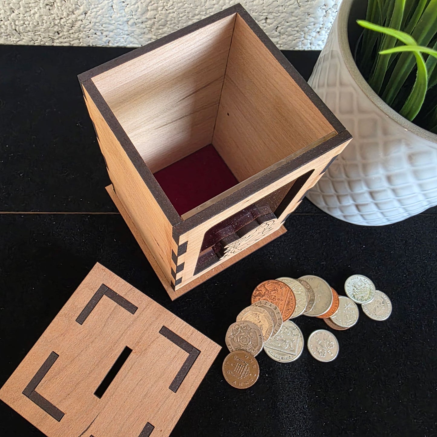 - Clear 2mm acrylic front panel – watch those savings stack up