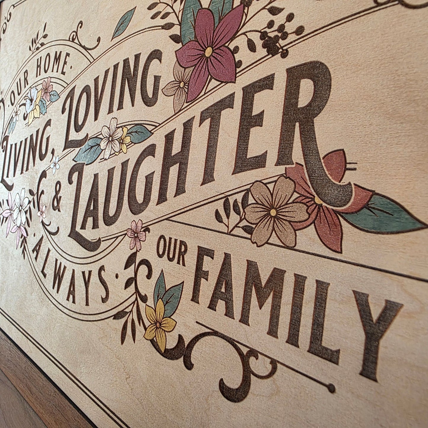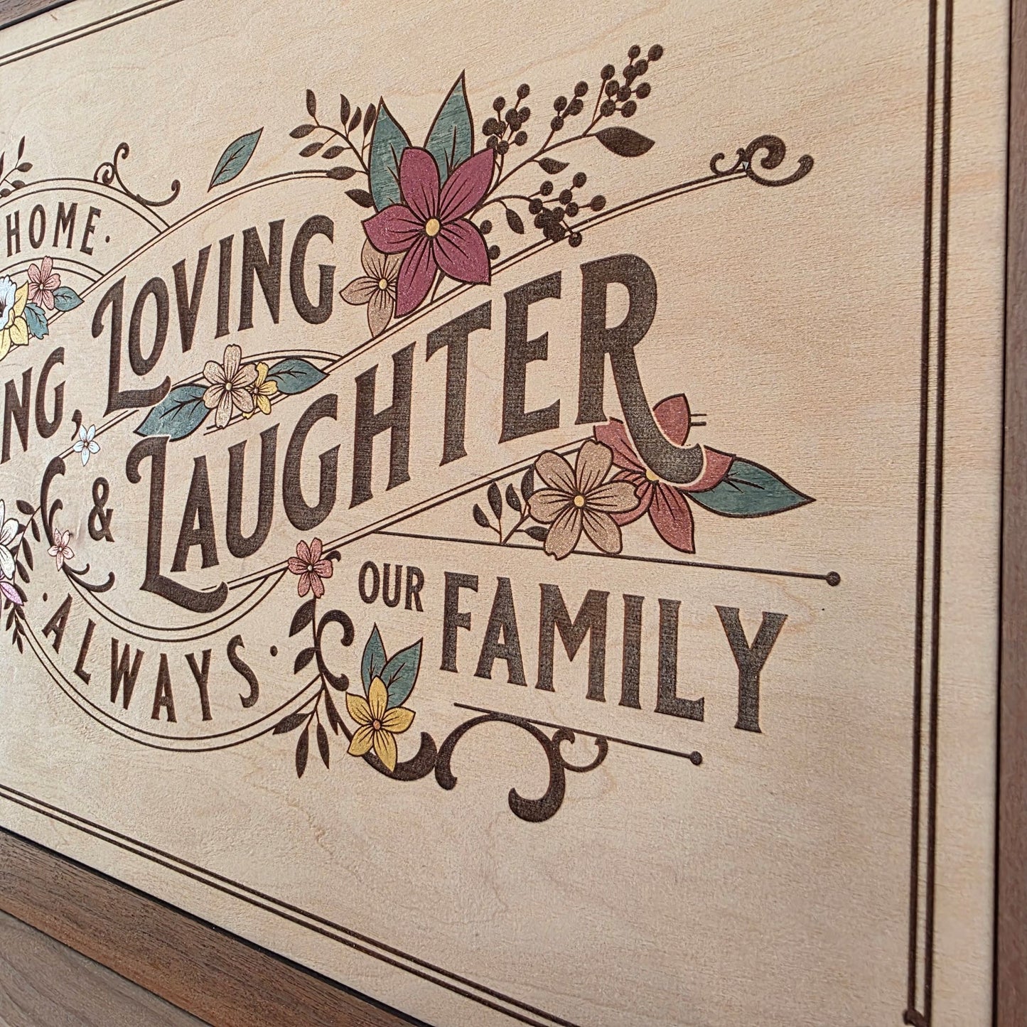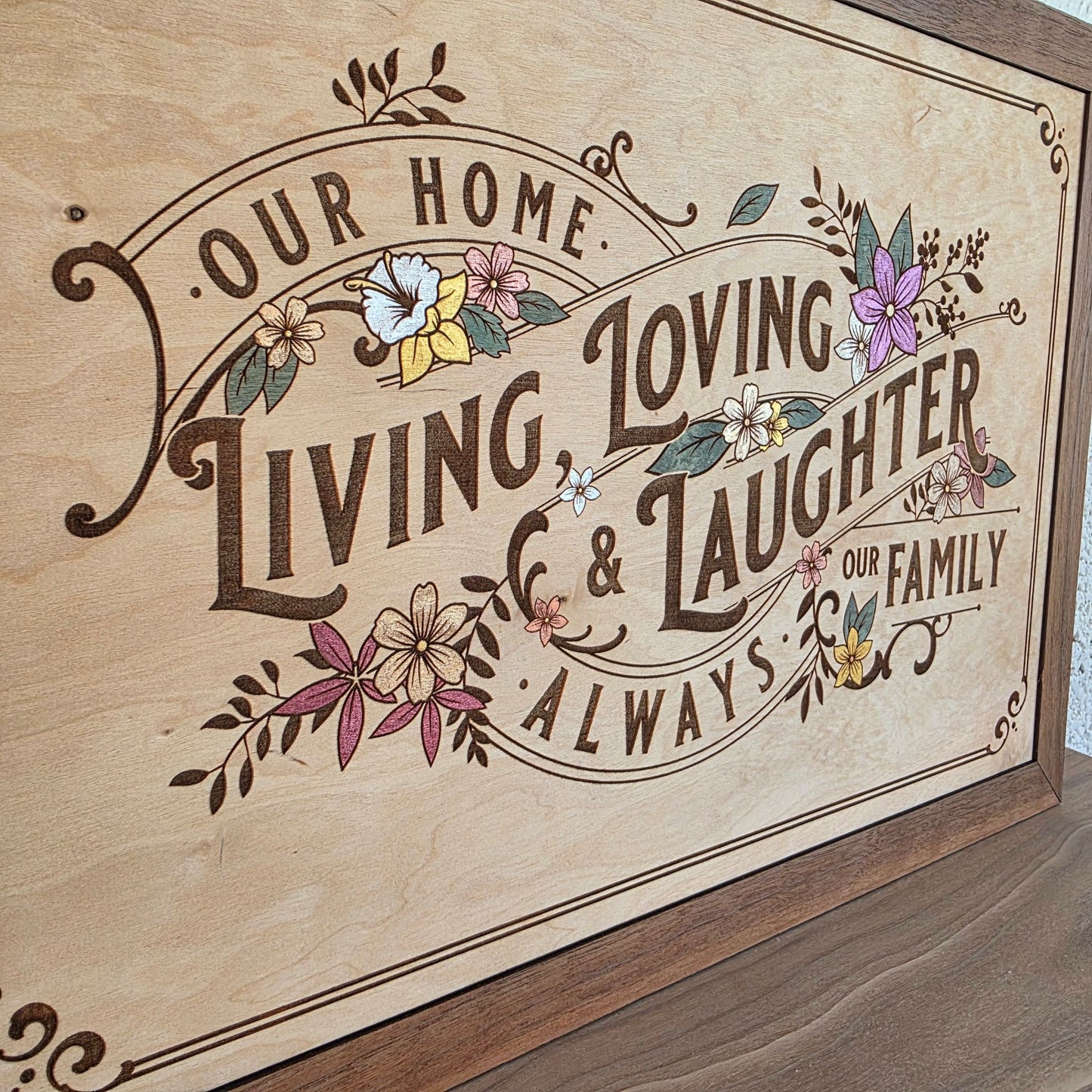 Our Home Family Wall Art - Hand-Painted Laser Engraved Birch in Walnut Frame