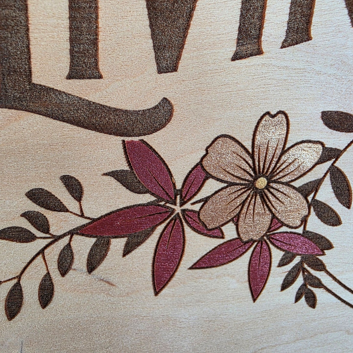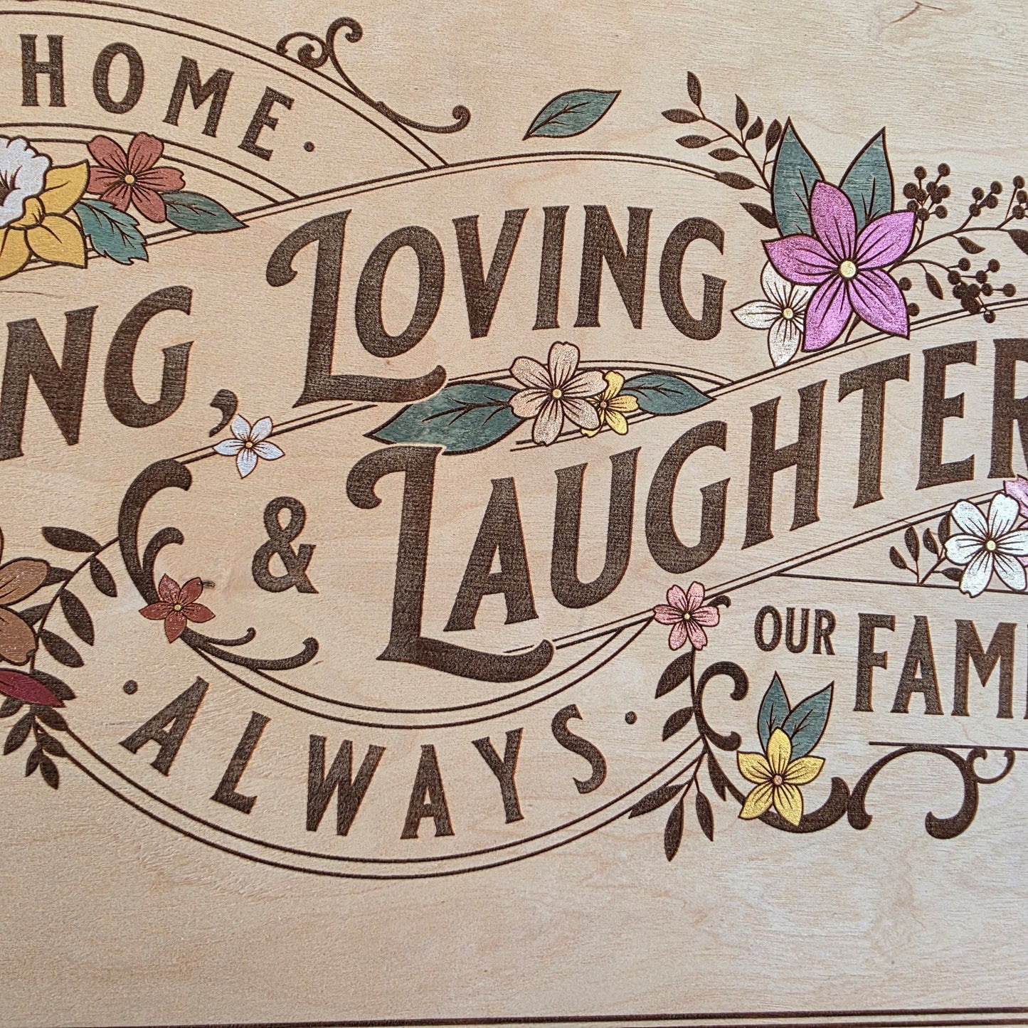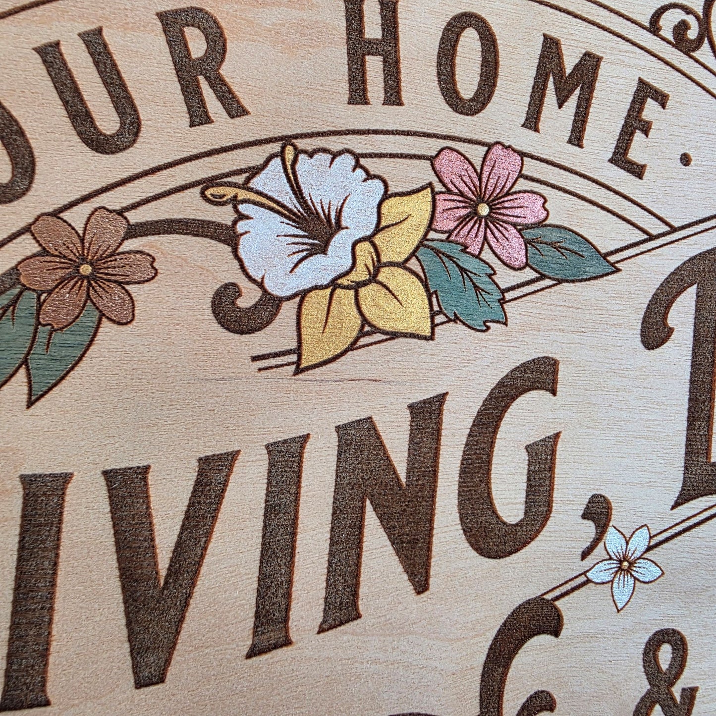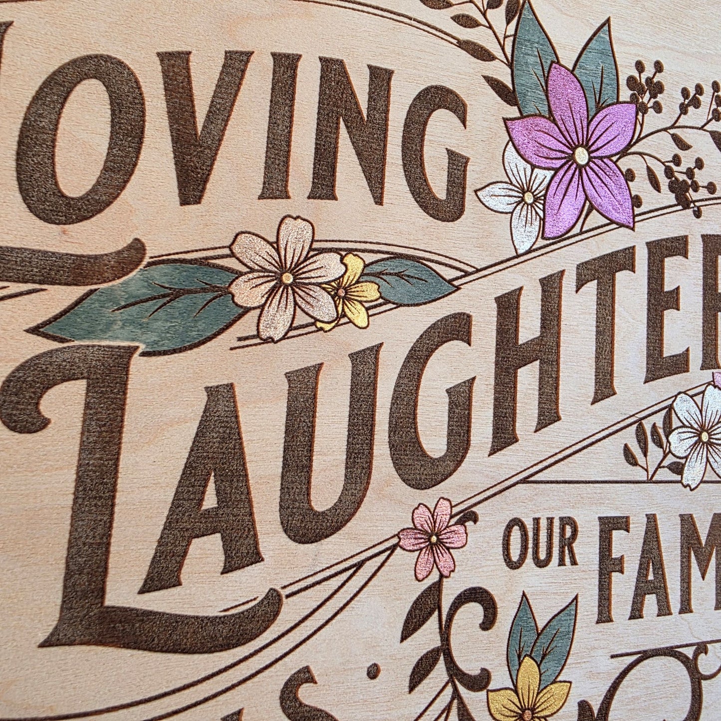 Our Home Family Wall Art - Hand-Painted Laser Engraved Birch in Walnut Frame