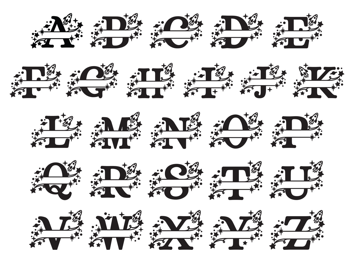 - Features adorable space rocket letters with trailing stars