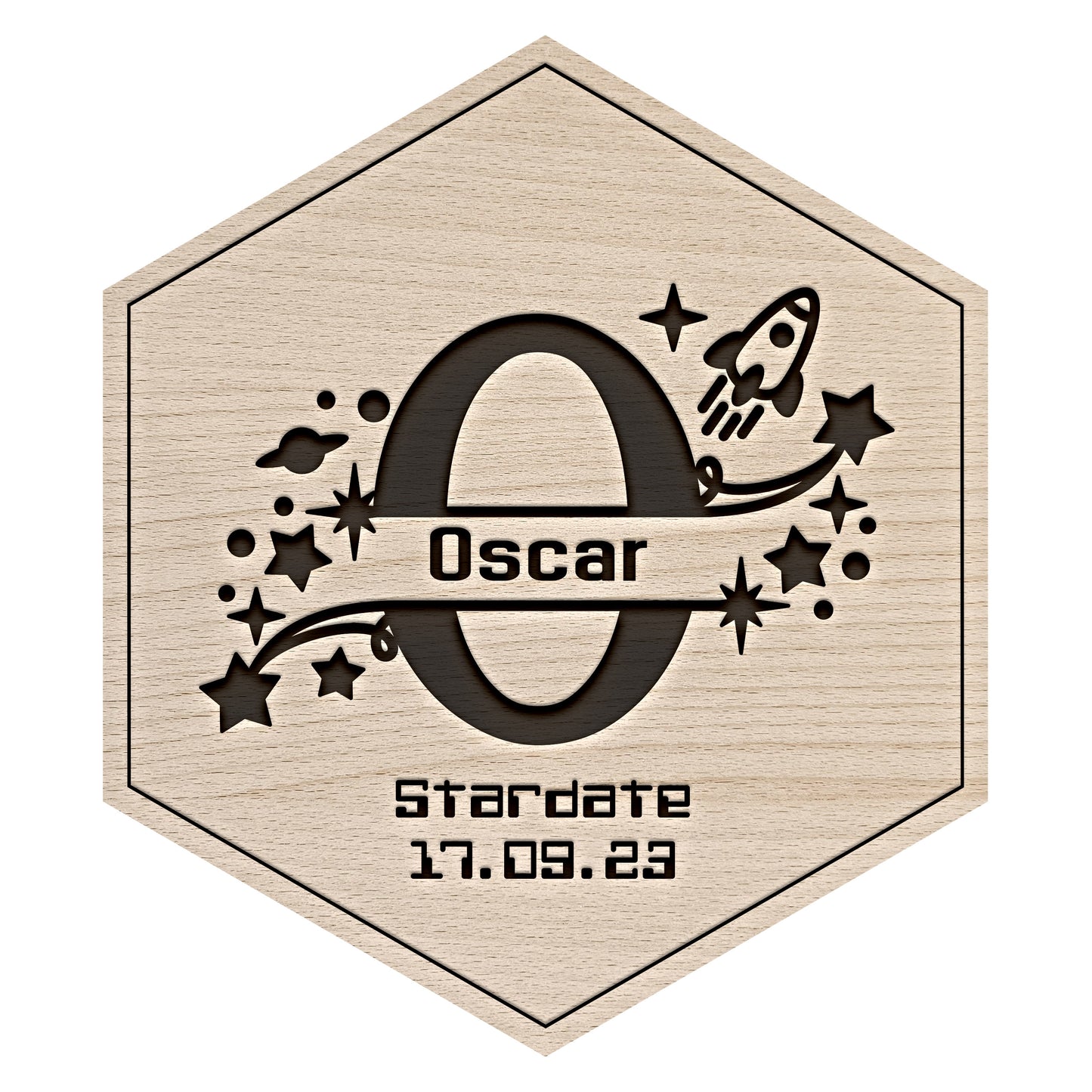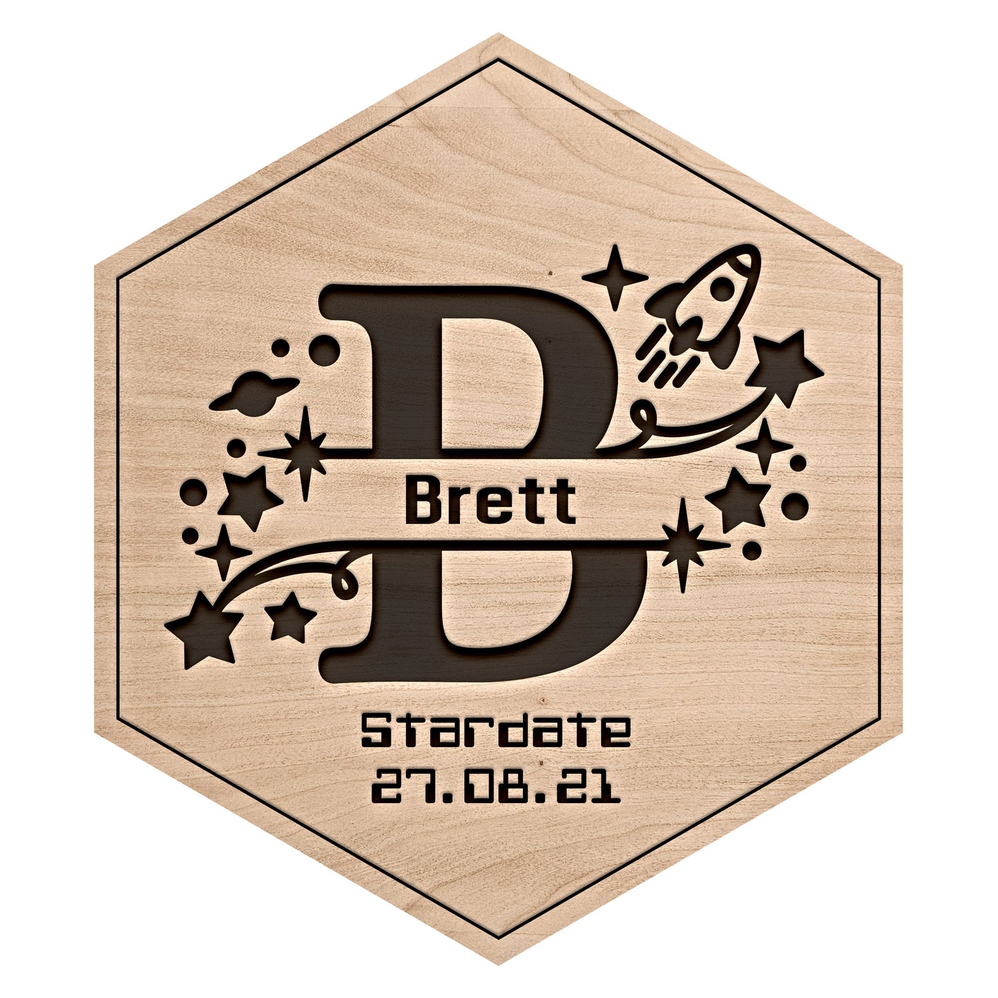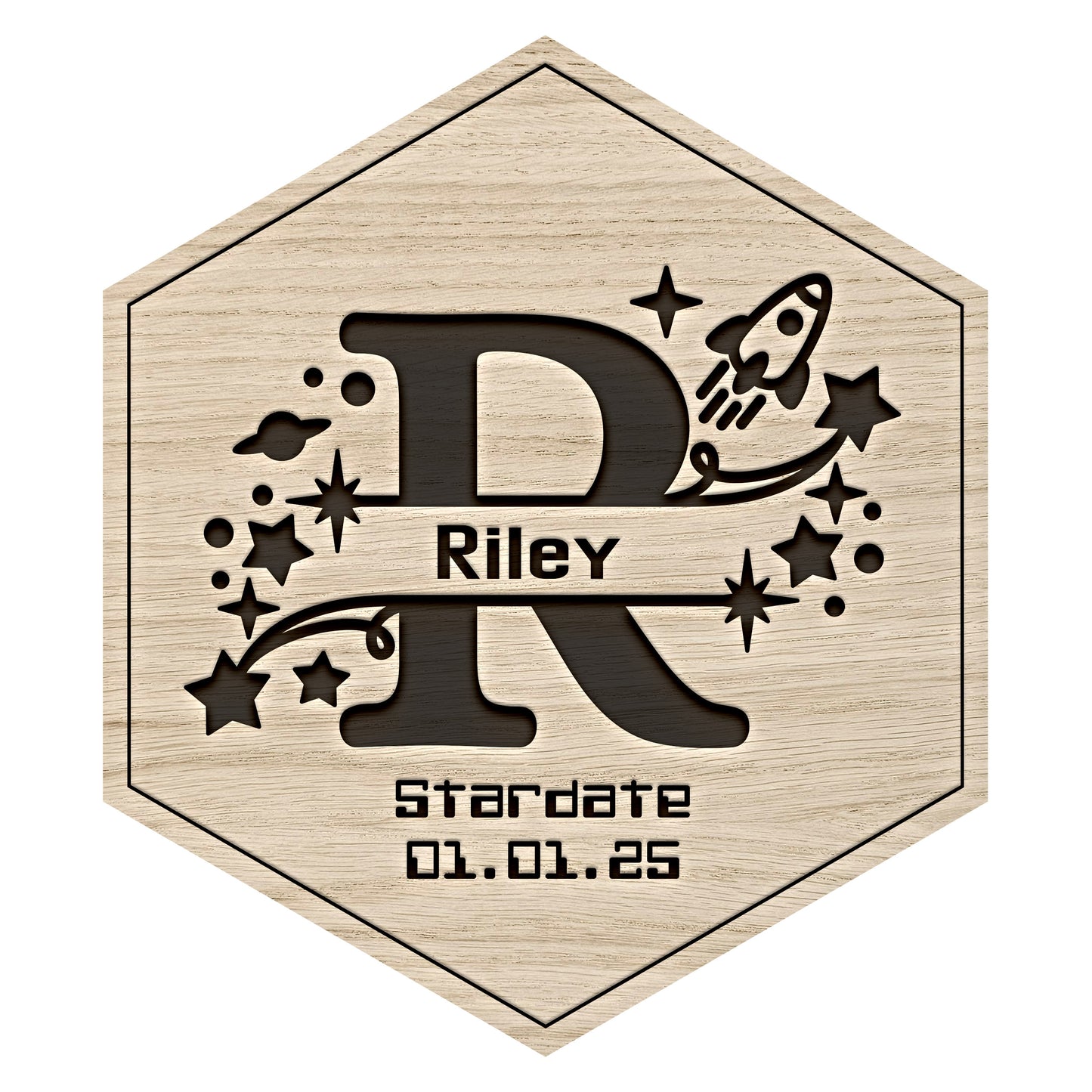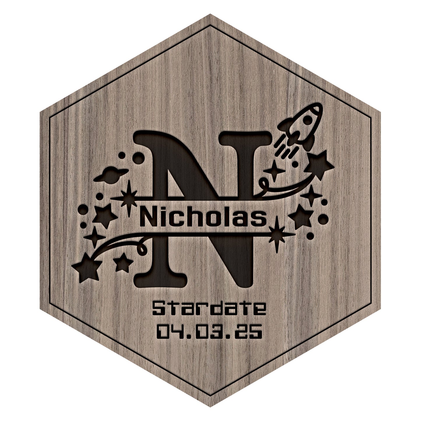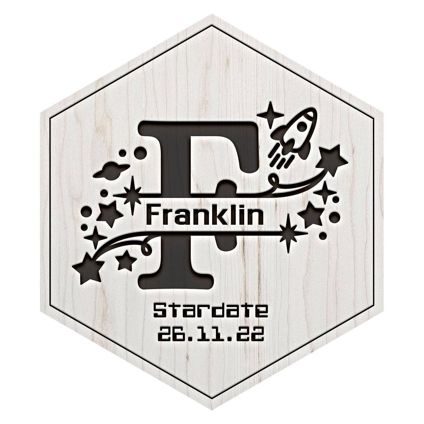 Senary Space Rocket Monogram Tile - Personalised Hexagonal Wall Art
