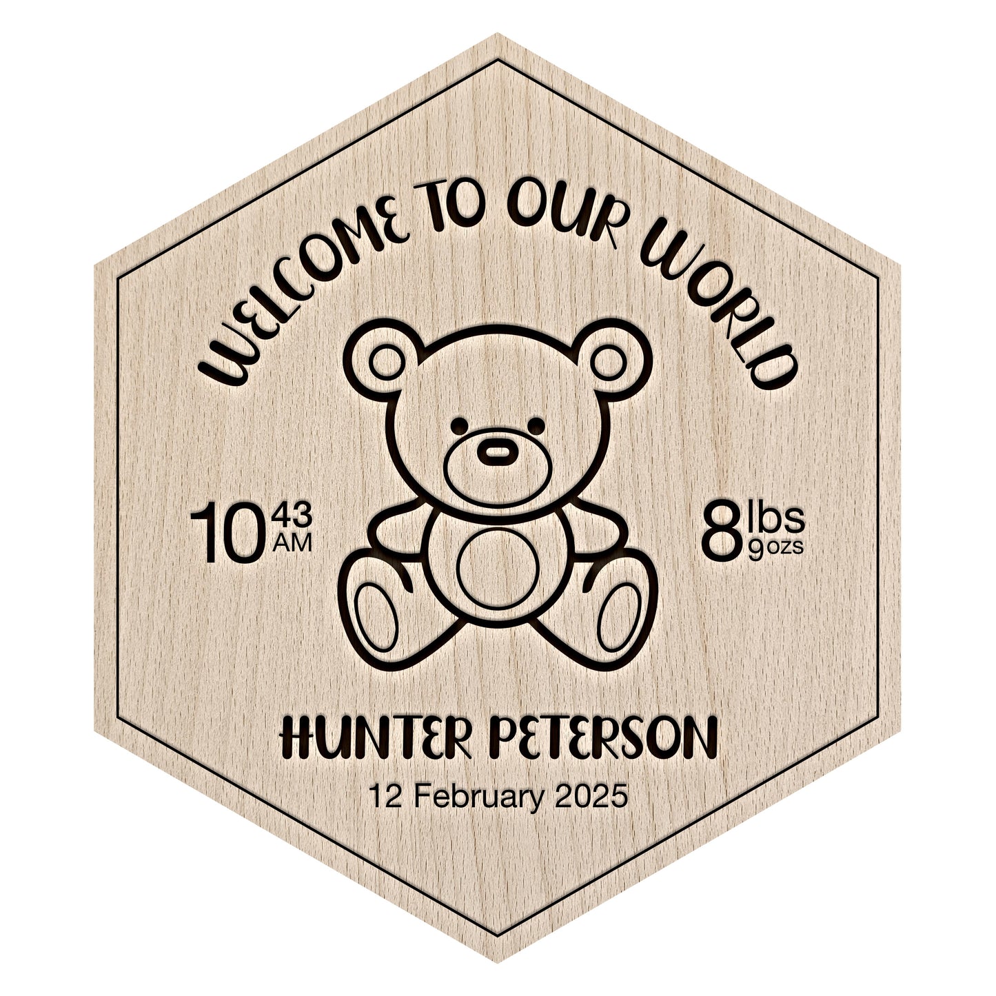Senary Welcome Baby Boy Tile - Personalised Hexagonal Wall Art