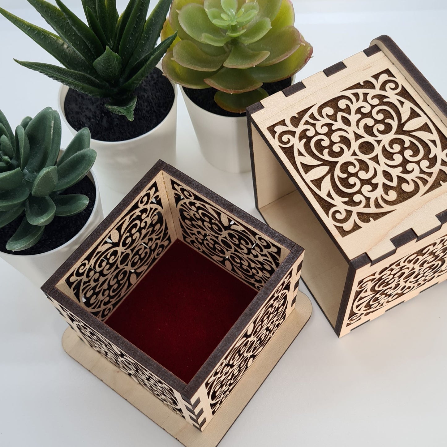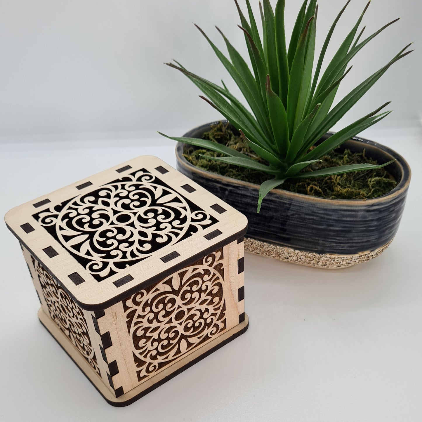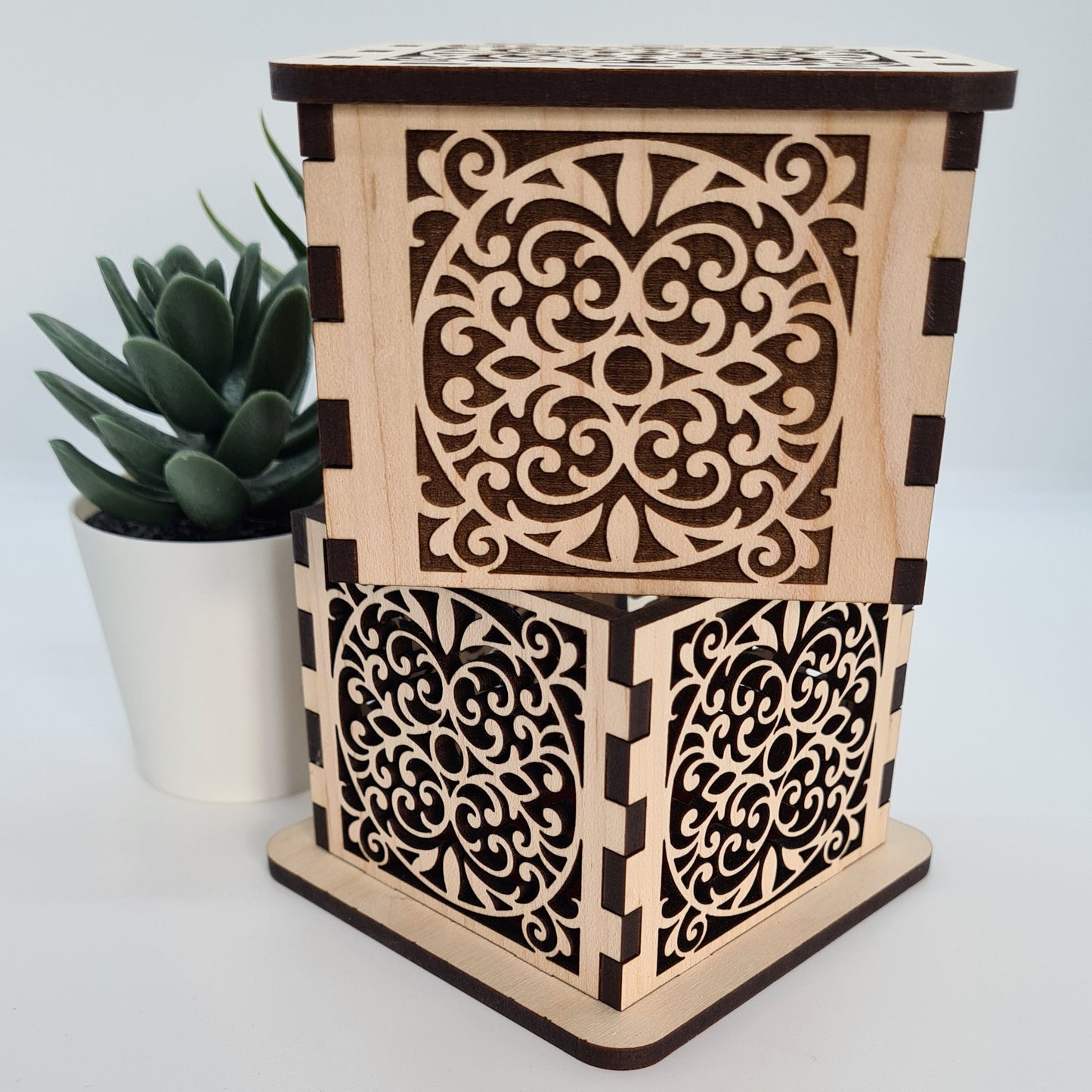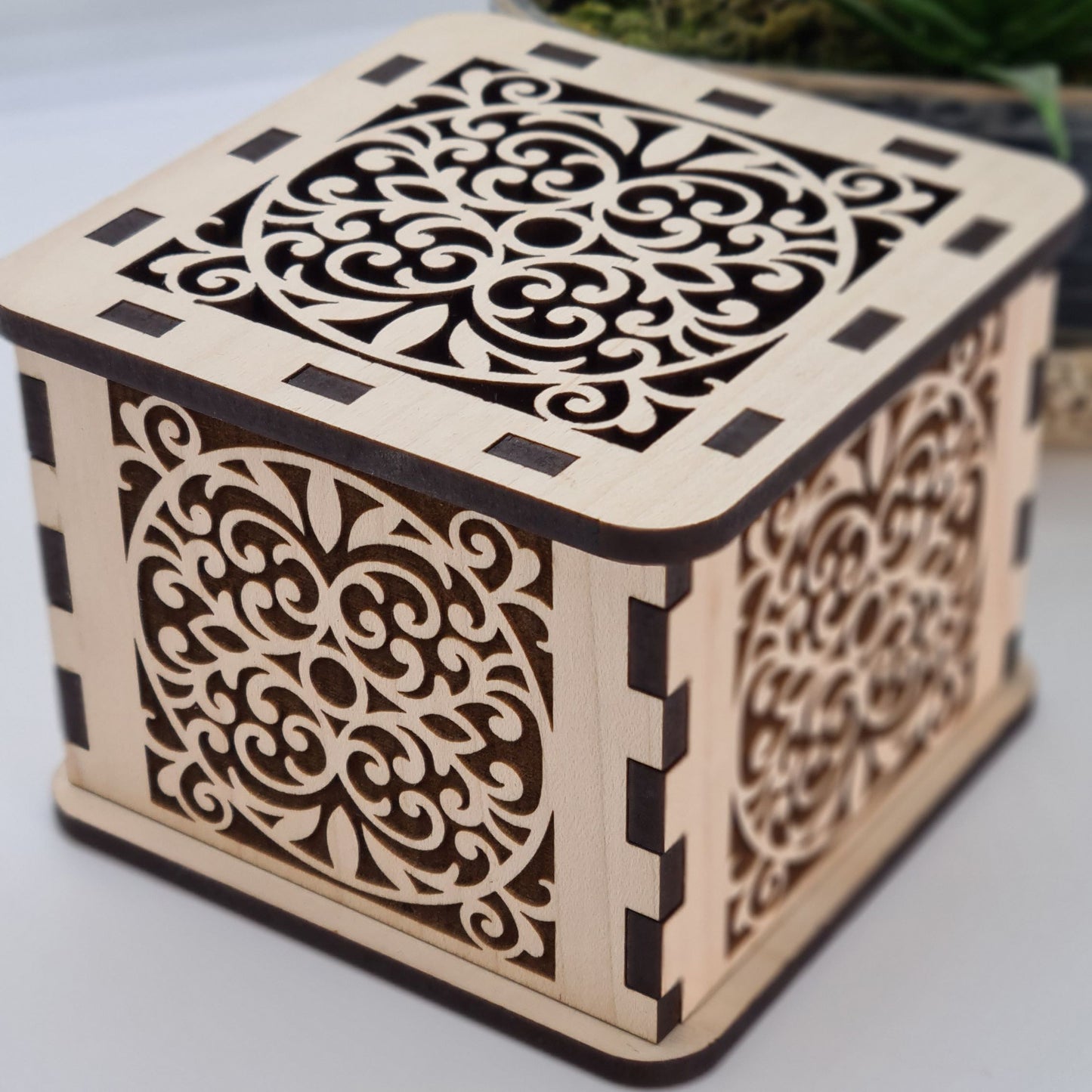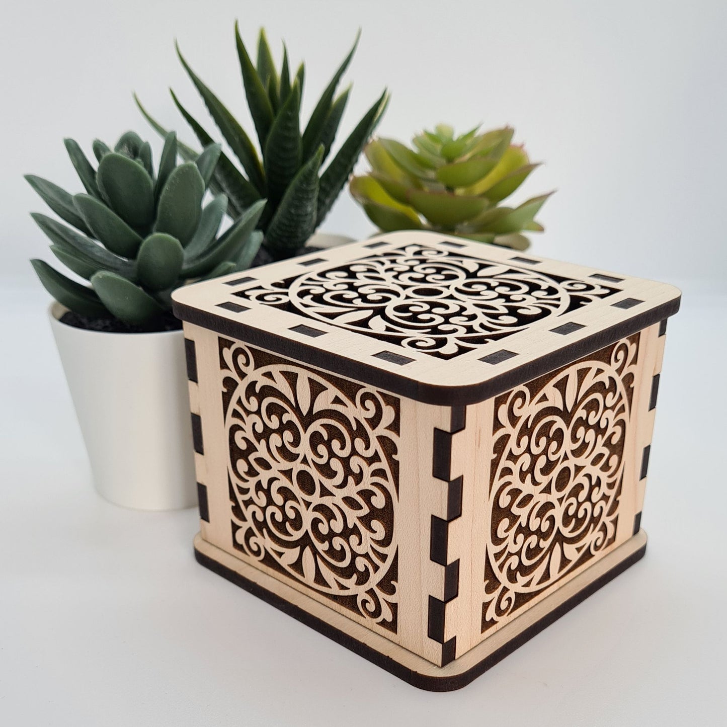 Filigree Trinket Box - Laser Cut Wood with Ornate Scrollwork