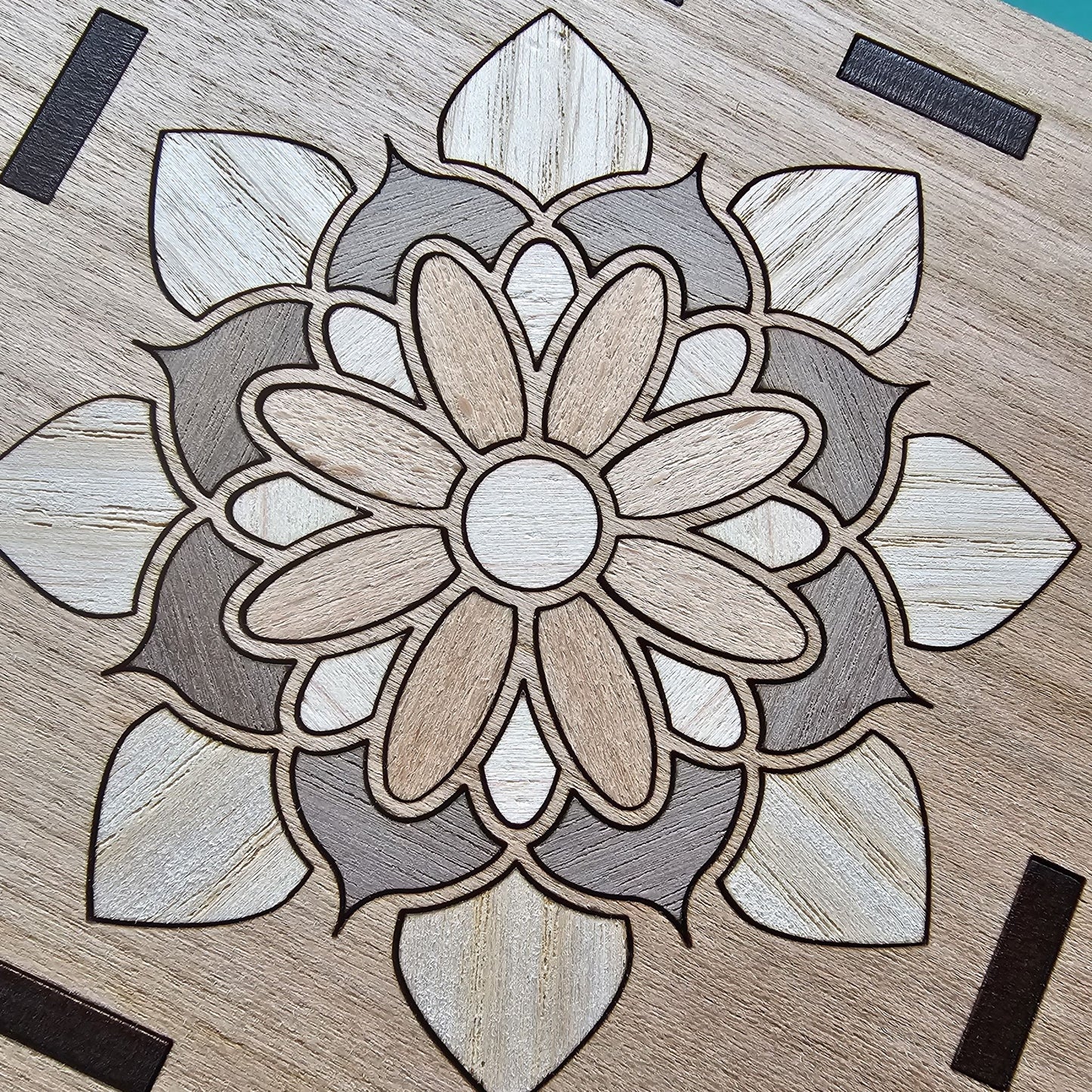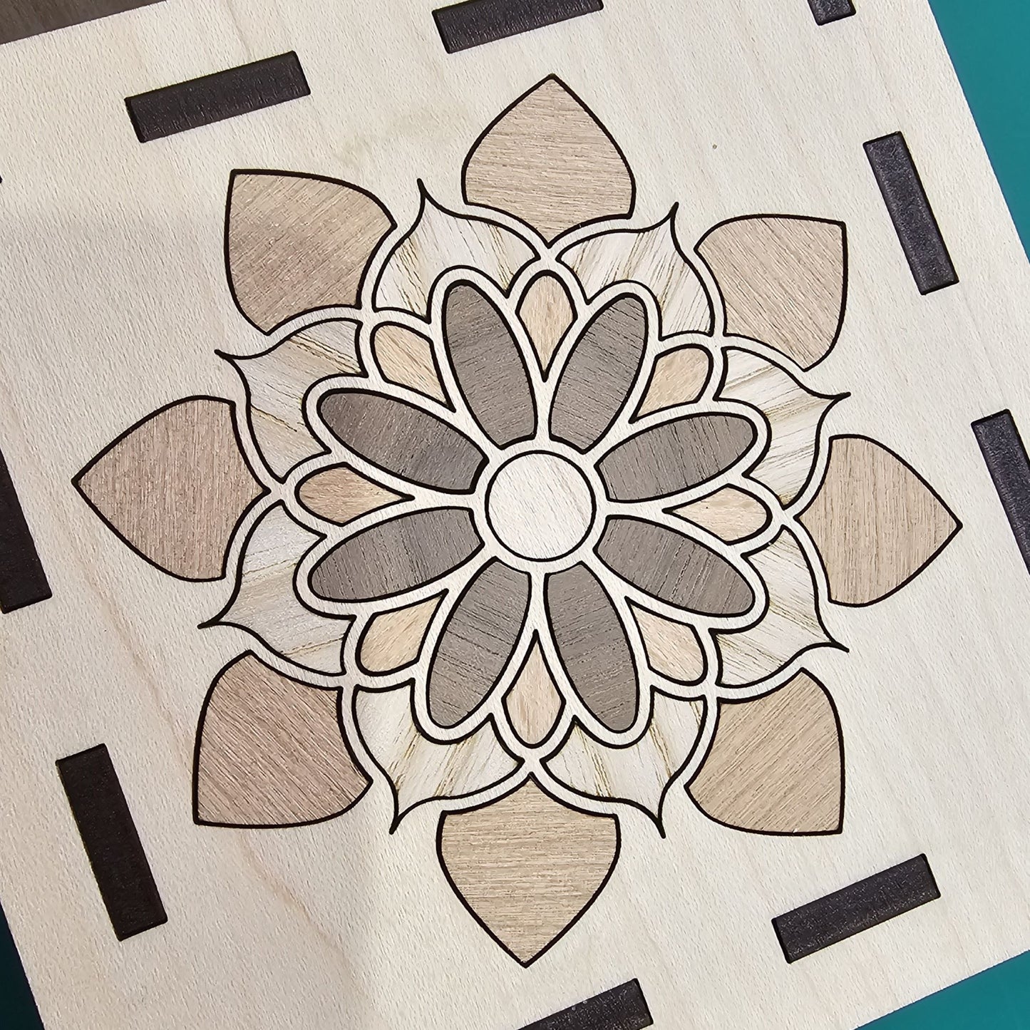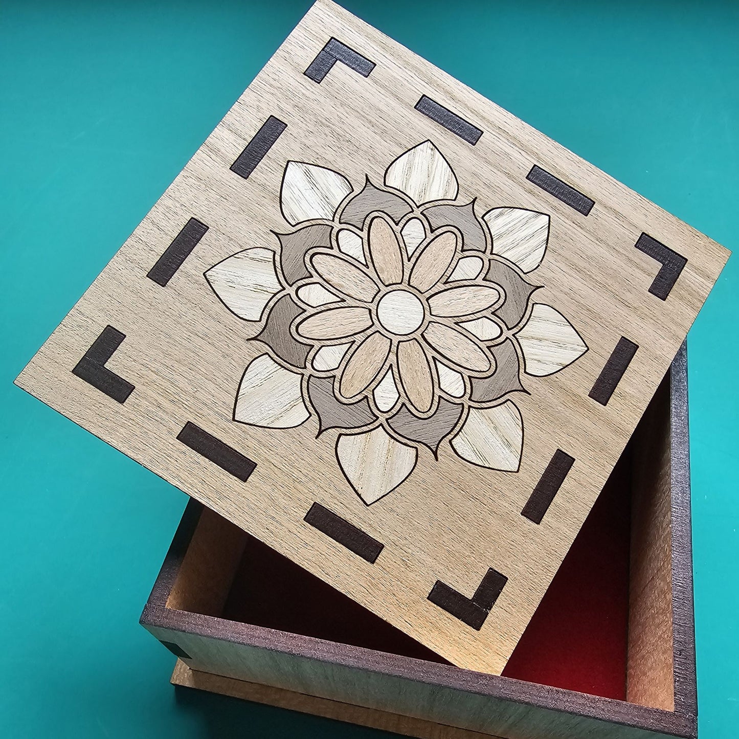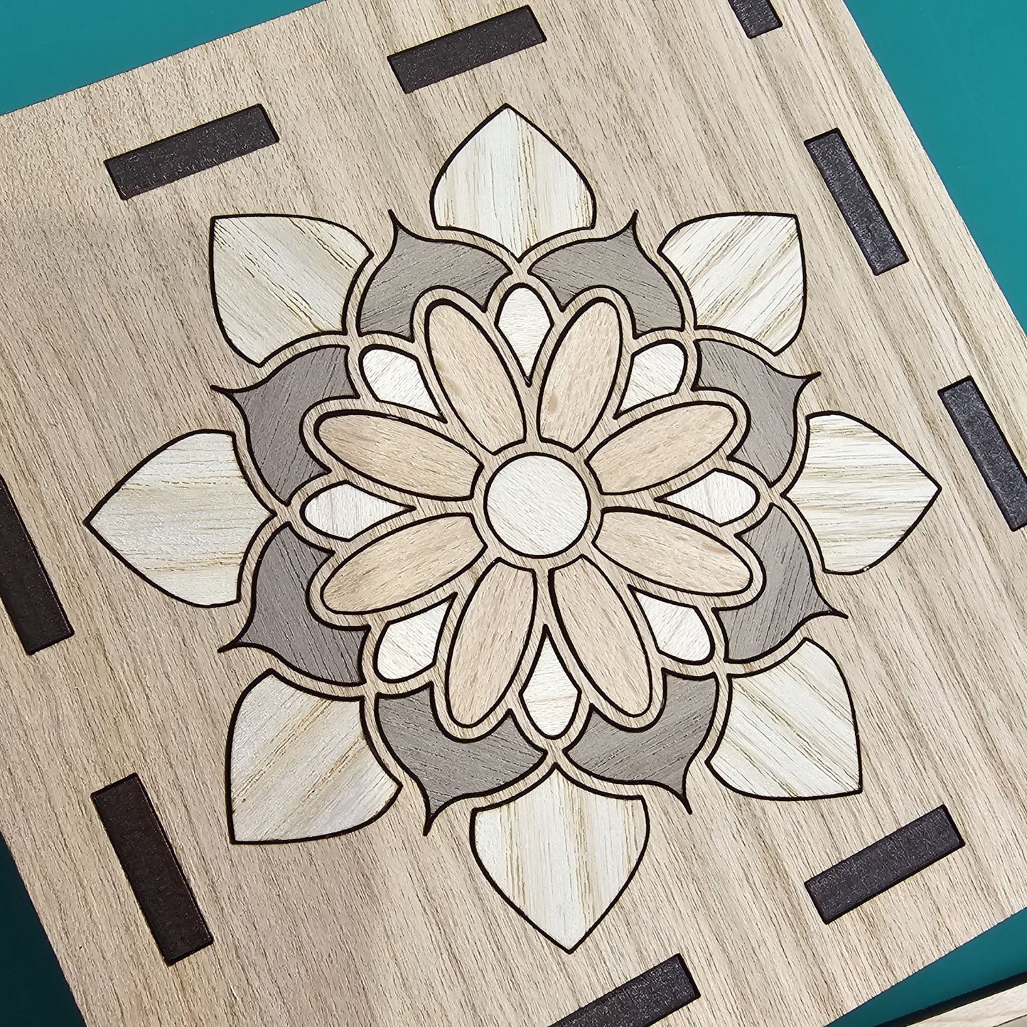 Mandala Flower Trinket Box - Handcrafted Wood with Inlaid Petals