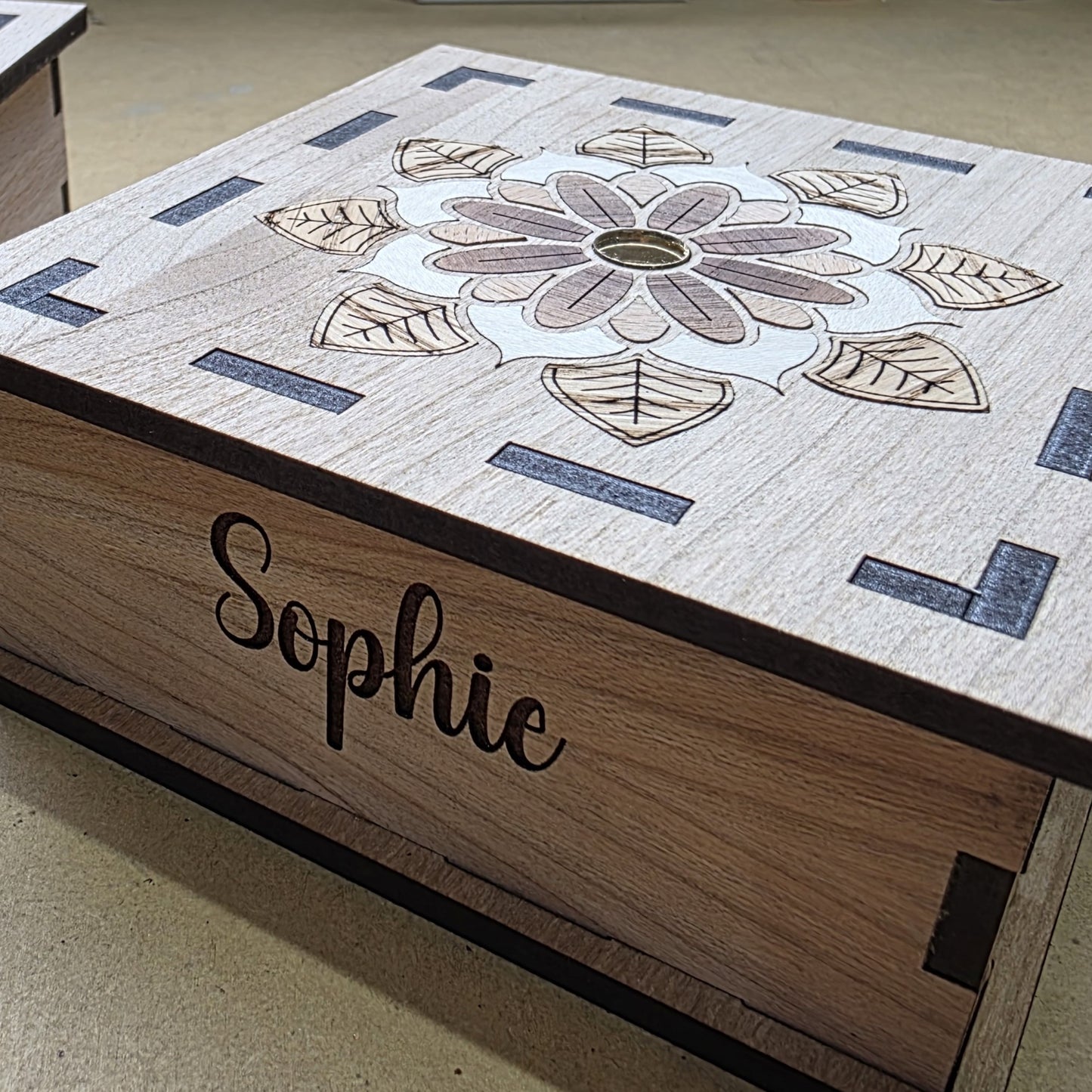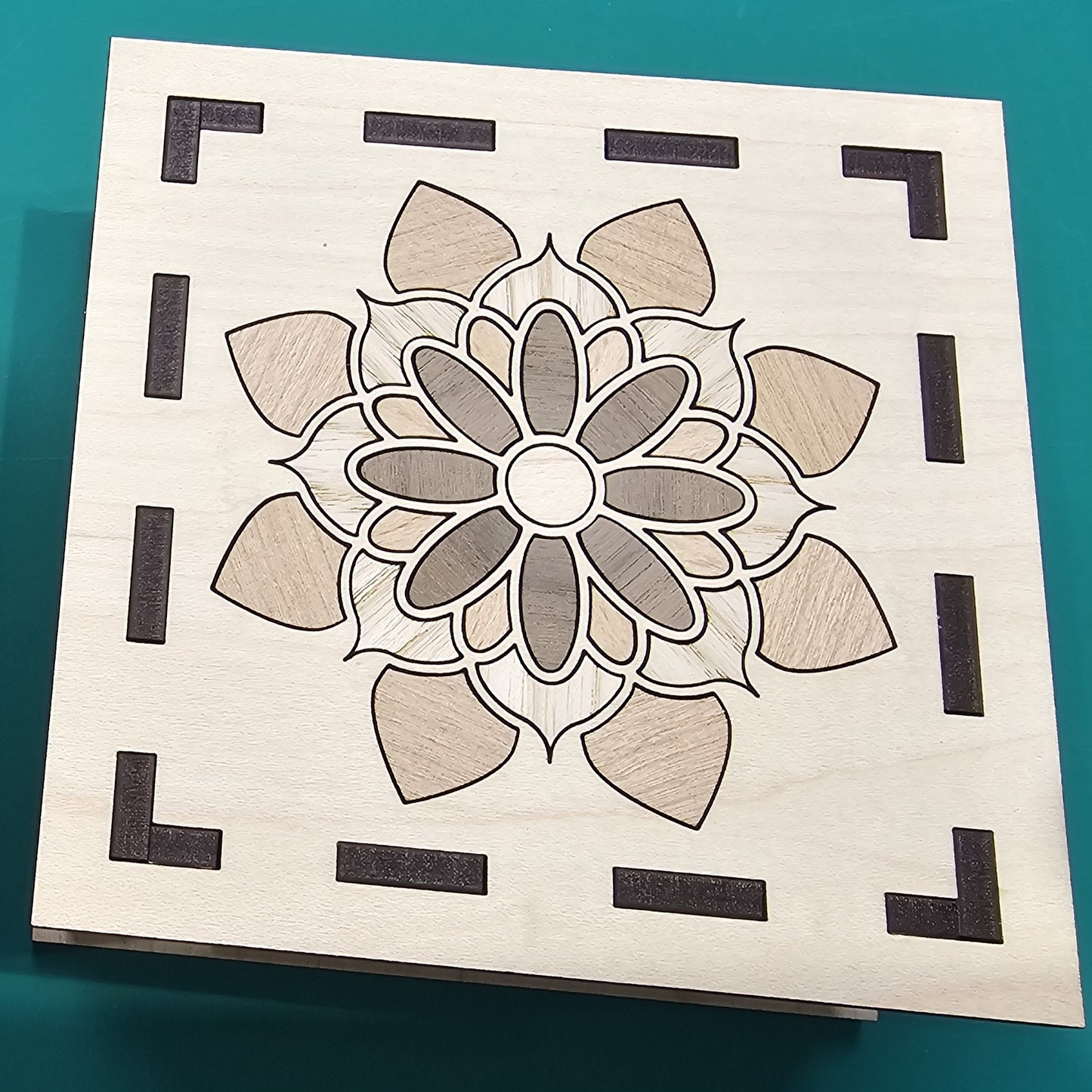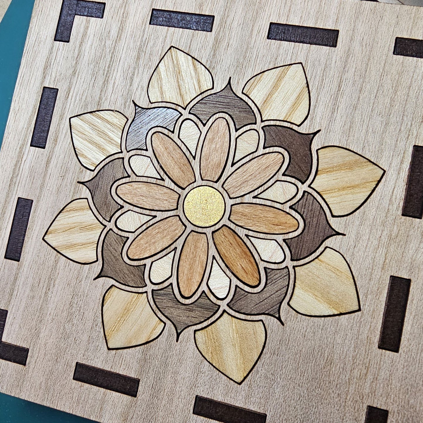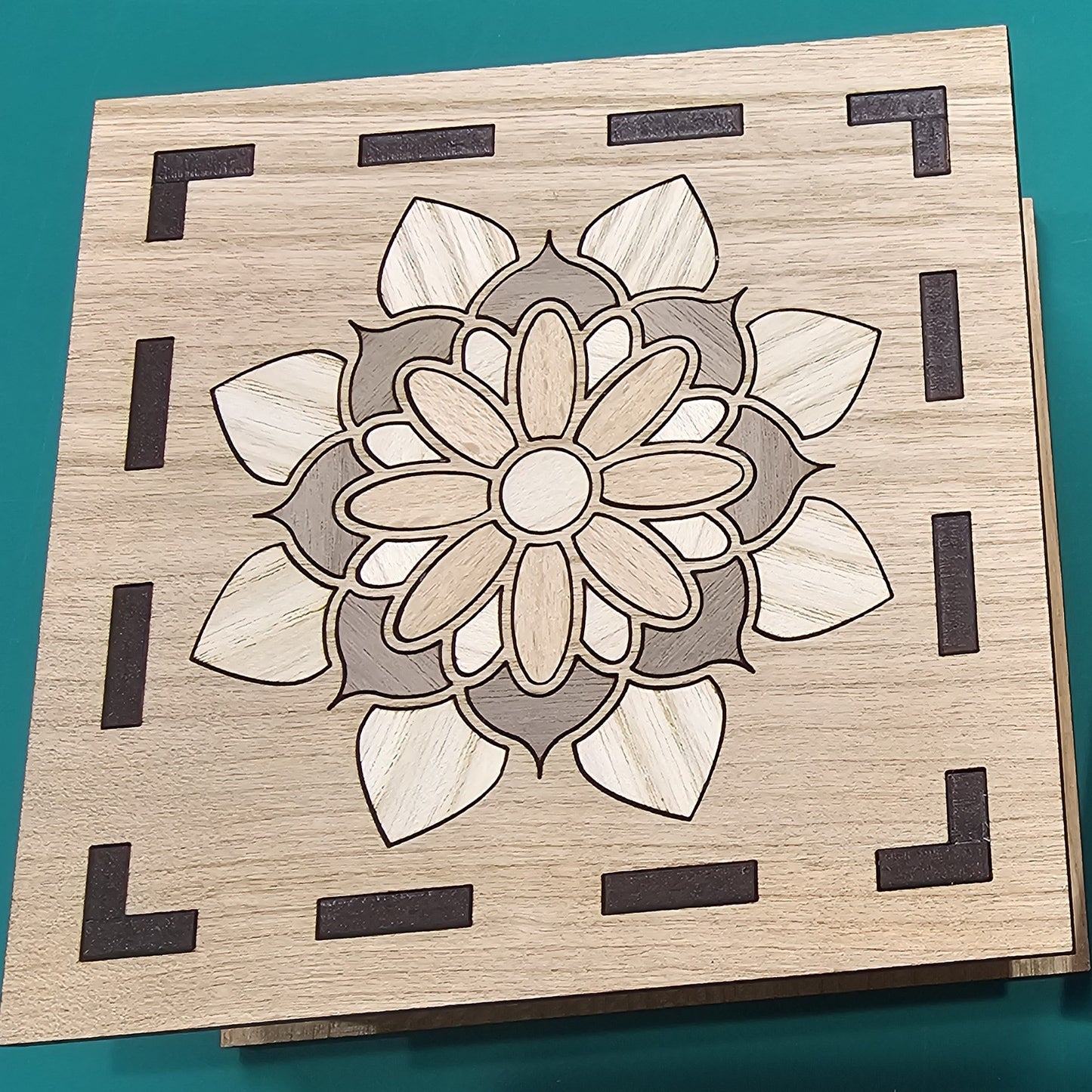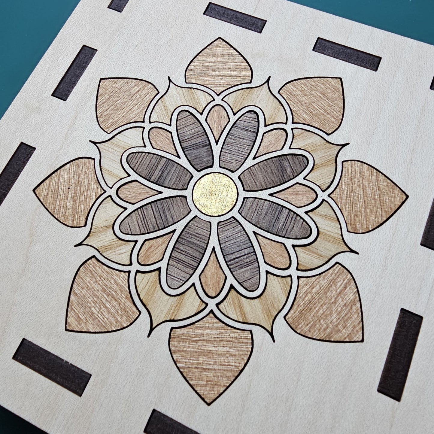 Mandala Flower Trinket Box - Handcrafted Wood with Inlaid Petals