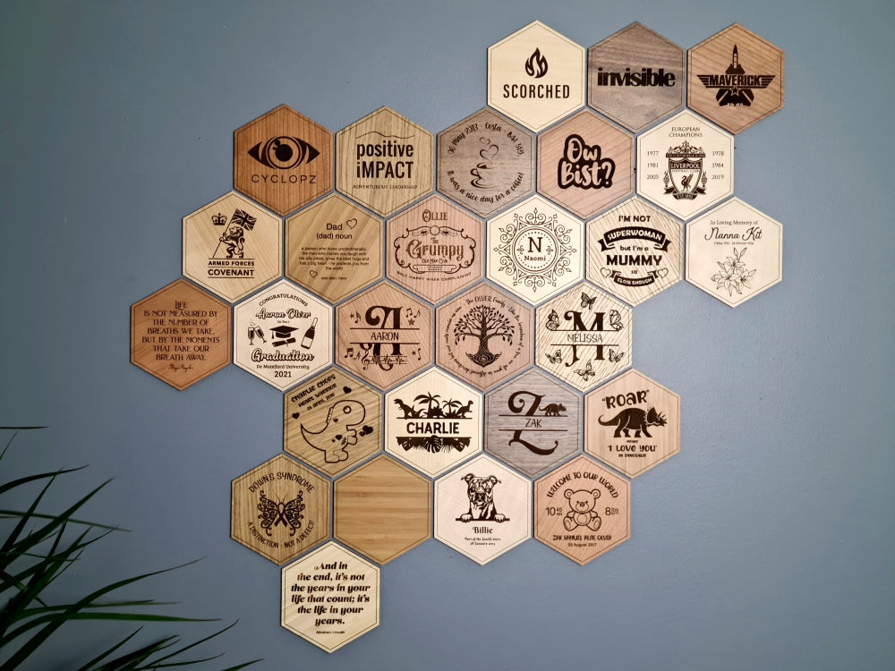 Transform your memories into stunning, personalised hexagonal wall tiles that evolve with your story. Personalise pre-designed tiles or commission a bespoke design to celebrate life's special moments in a way that's as unique as you are.