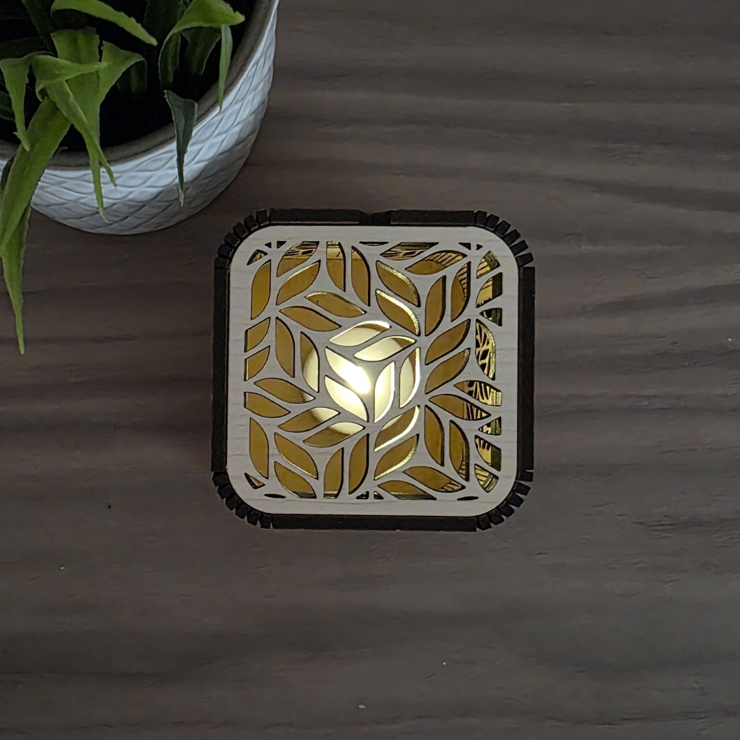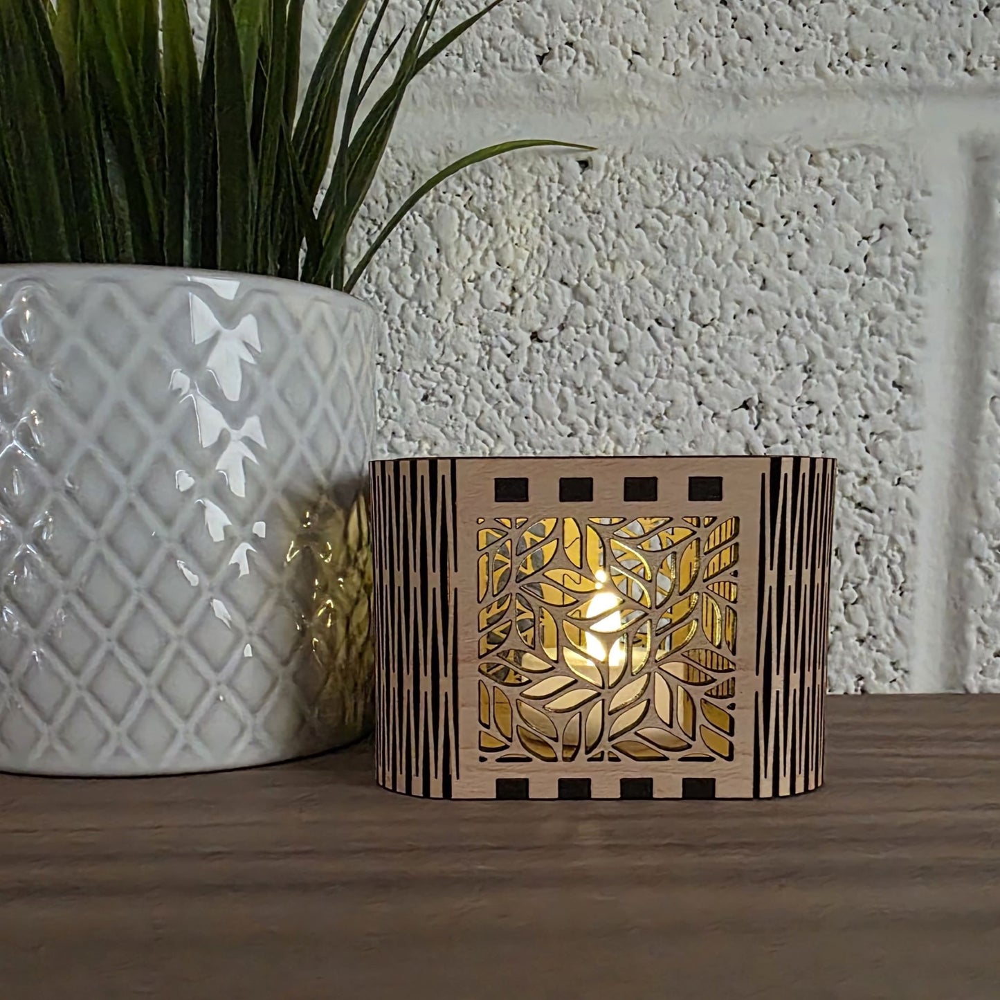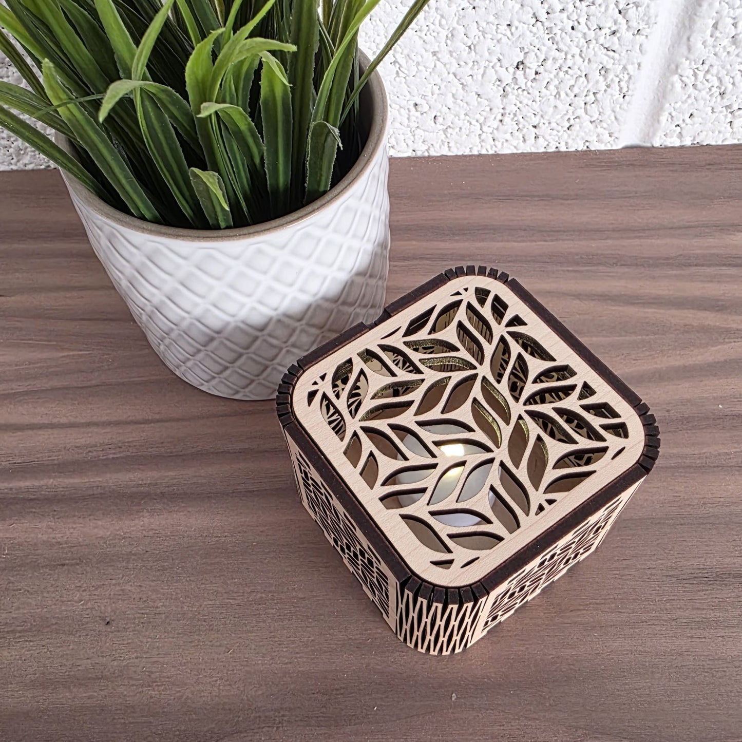 Geometric Pattern Wooden Night Light Box with Battery Candle