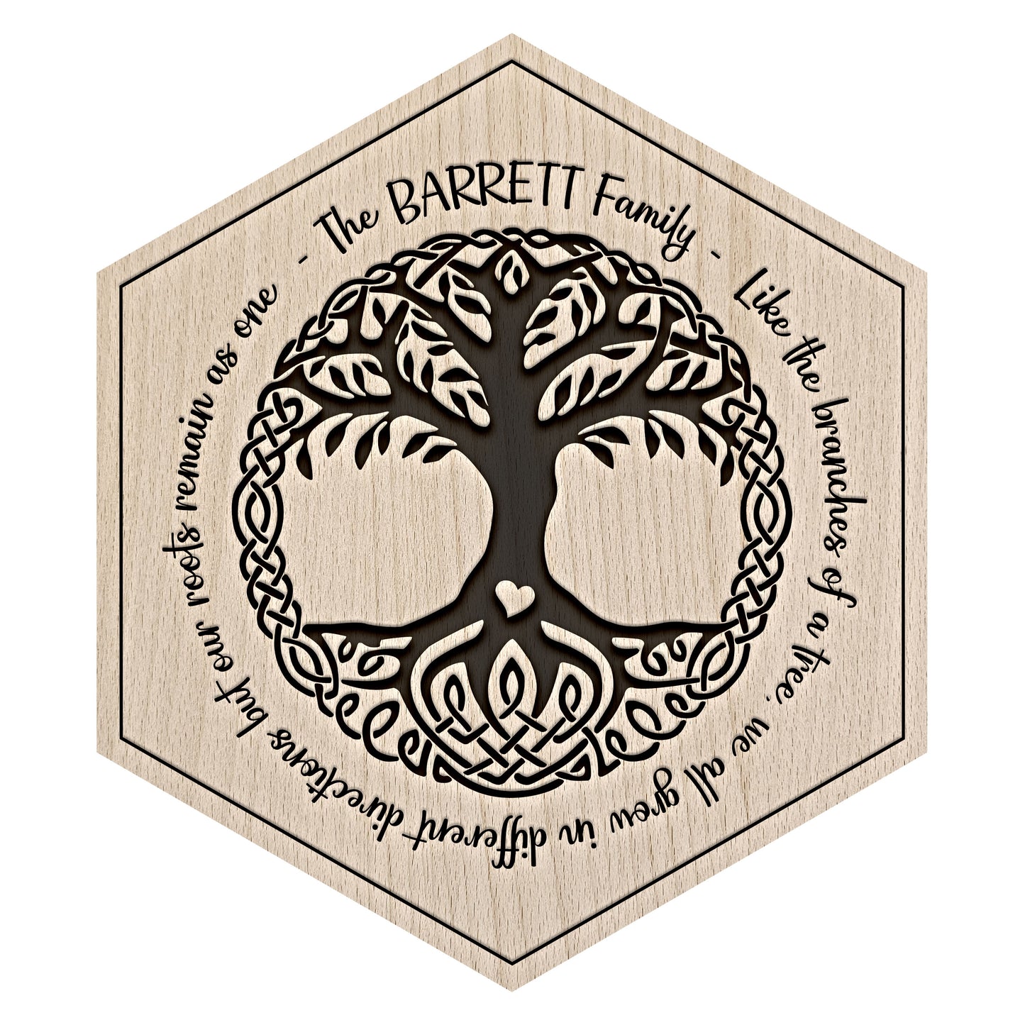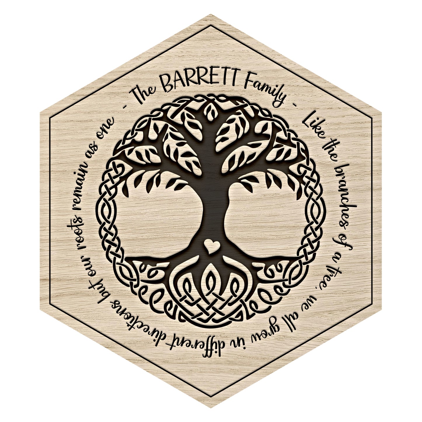 Senary Celtic Tree of Life Tile - Personalised Hexagonal Wall Art